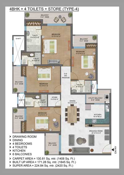 - Electric Connection Charges (Approx.) Rs.75,000/- (1495 sq.ft.) & Rs.1,00,000/- (1715/1780/2420sq.ft) per apartment*.